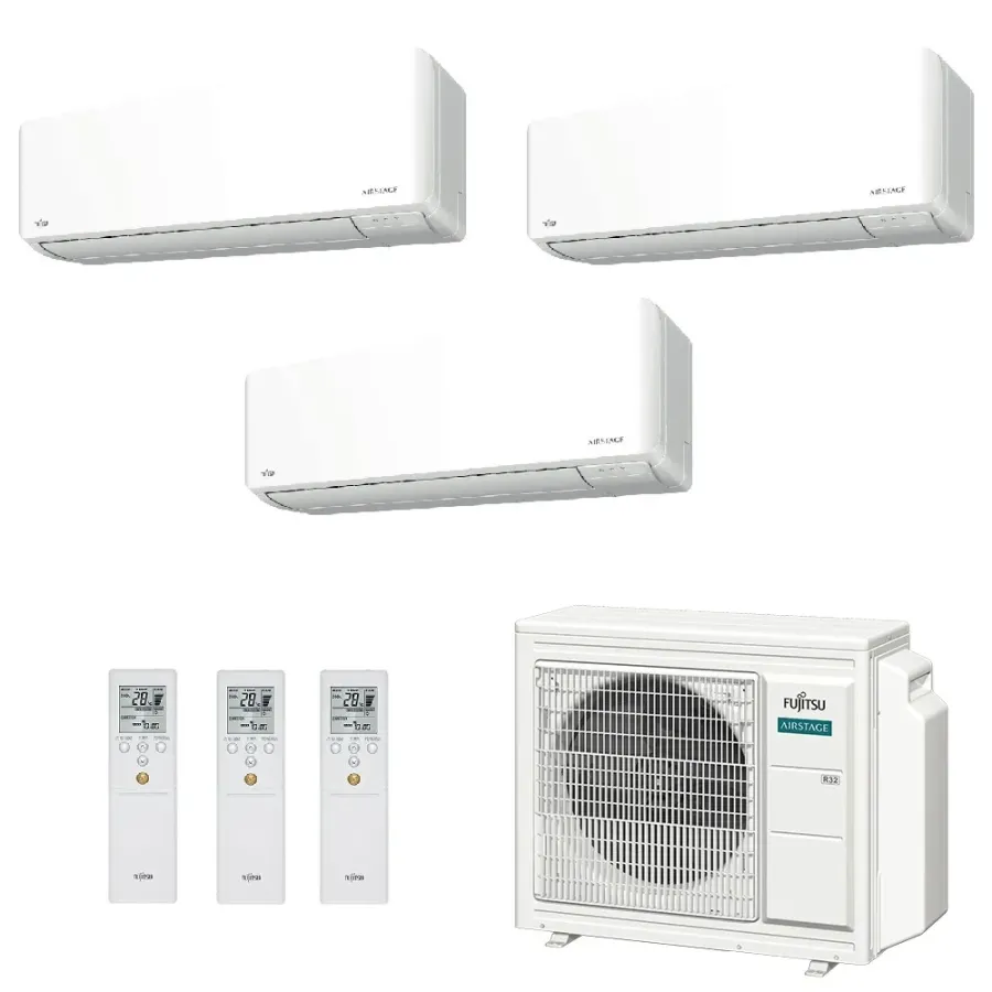 Fujitsu Trio Split 9000+9000+12000 AOEG24KBCA3 ASEH09KMCG ASEH09KMCG ASEH12KMCG Klimaanlage KMCG Weiß R-32 A+++ A++