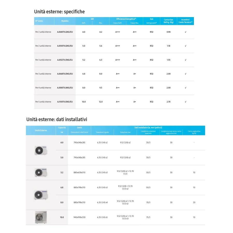 Ideal für Umgebungen ein Innengerät bis zu 27 mq + ein Innengerät bis zu 27 mq + ein Innengerät bis zu 36 mq