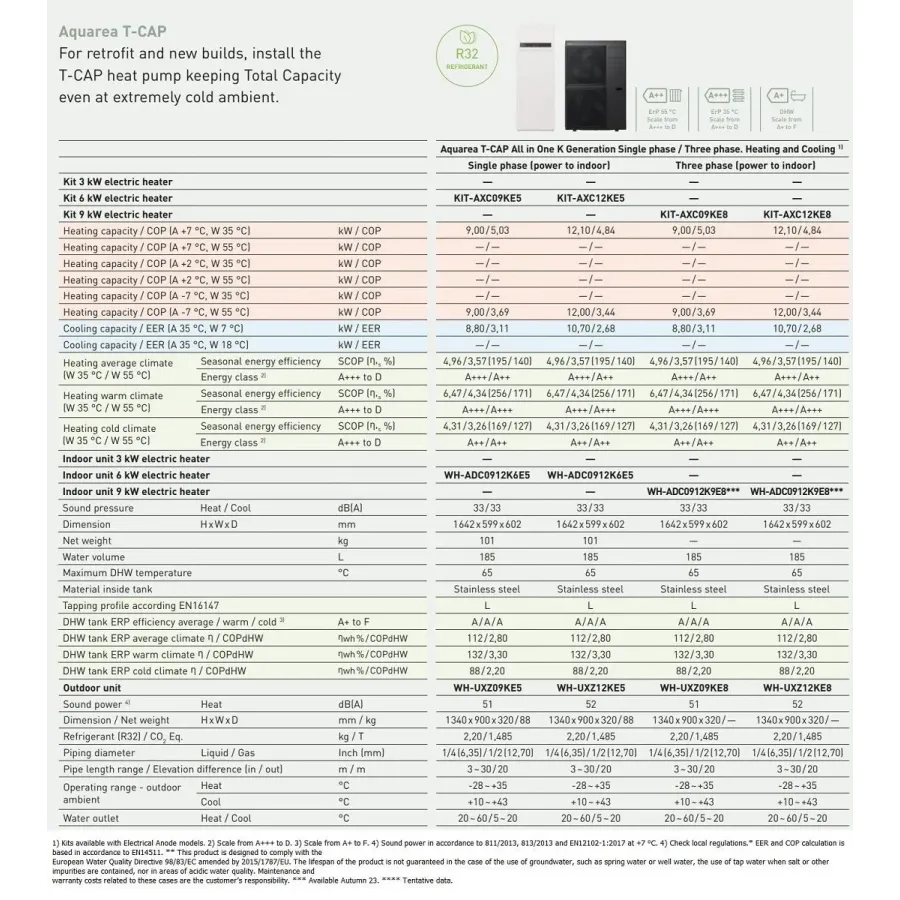 Panasonic Aquarea T-CAP Wärmepumpe KIT-AXC09KE5 9 kW 220 v R32 Kombi-Hydromodul Generation K einzelphase